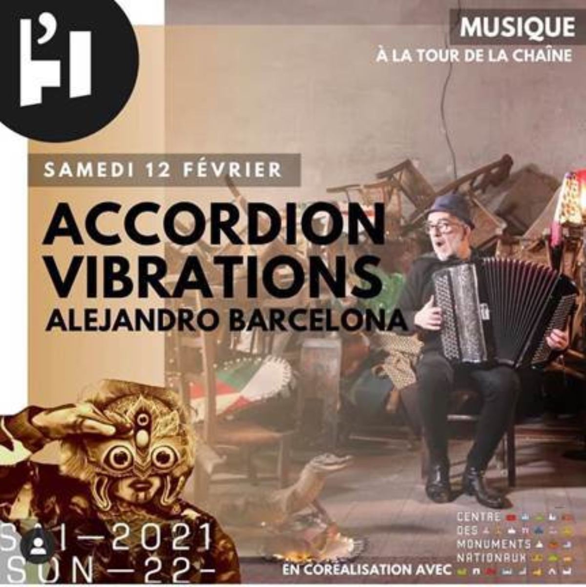 Le samedi 12 février 2022, ce sera «Accordion Vibrations » de et avec Alejandro Barcelona dans la salle basse de la tour de la Chaîne.