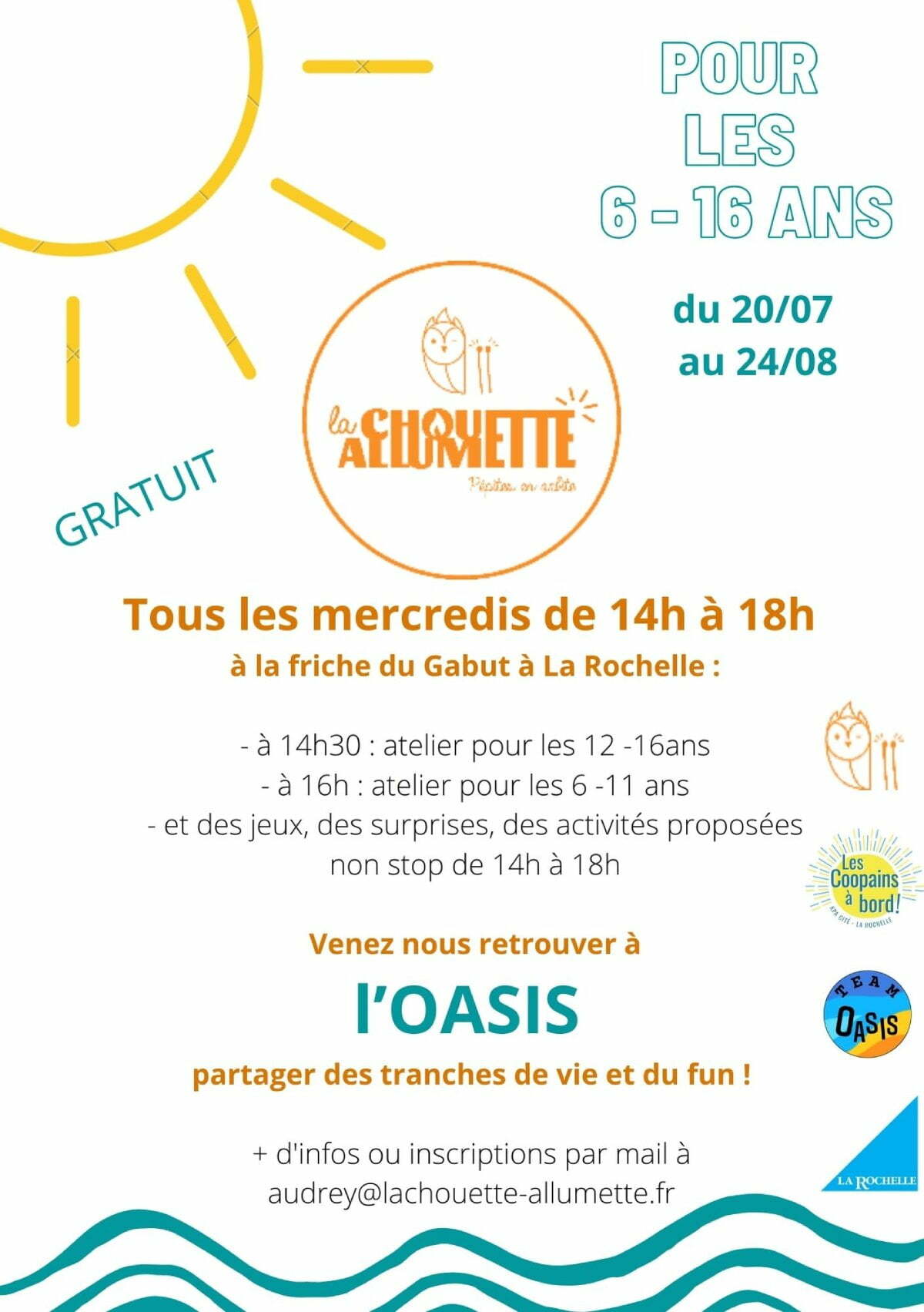 Une Oasis de vie pour les 6-16 ans, est proposée tous les mercredis de l’été de 14h à 18h à la friche du Gabut à La Rochelle. C’est gratuit.