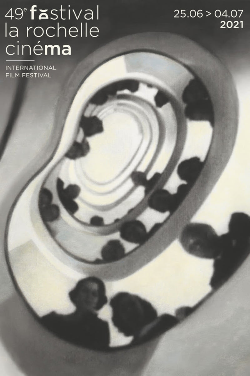 « Comme suspendus dans les sinuosités d’un décor irradié de lumière, les personnages de l’affiche s’ordonnent autour d’une spirale dont le dessin évoque le déroulement de la bobine d’un film sur le projecteur », explique ce dernier. « Métaphore visuelle du cinéma célébré à La Rochelle, cette boucle ornée de figures fantomatiques tire son inspiration d’un plan d’Europe 51 de Roberto Rossellini, point d’origine d’une tragédie passionnelle inscrite au cœur de la trilogie de la solitude du cinéaste italien, entre Stromboli et Voyage en Italie.«