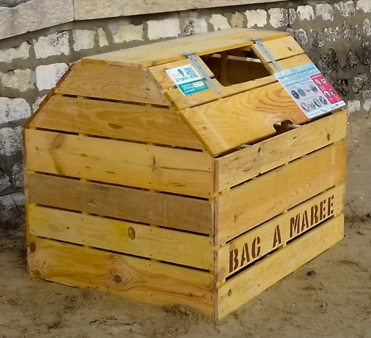 Un bac à marée est une boîte en bois dans laquelle les promeneurs vont pouvoir se débarrasser des déchets qu’ils auront ramassé lors de leurs balades. A l’intérieur, il ne faut déposer que les débris polluants, morceaux de filets, cartons, plastiques, etc… Ensuite, grâce à un signal des promeneurs une association ou une entreprise sera chargée de collecter les bacs à marée remplie puis de les trier. Ils sont donc intégrés dans une application web qui indique le taux de remplissage du bac par les promeneurs. Ils permettent par la suite de savoir si l’état écologique du trait de côte s’améliore ou non.