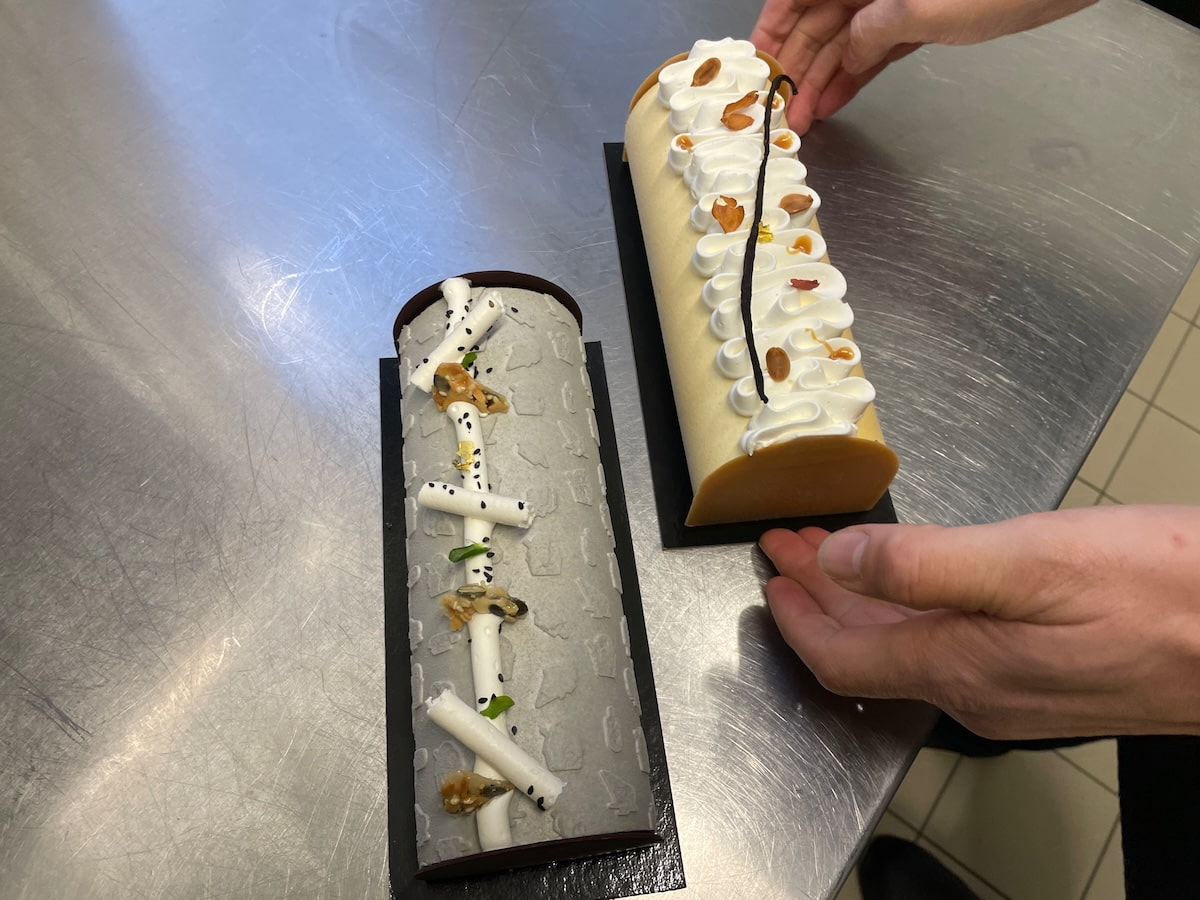 Et chez Roméo Créateur givré, il n’y a pas de gâchis. Les bords des bûches sont coupés pour des raisons esthétiques, mais elles sont proposées en vente individuelles, pour ceux qui sont moins de six et qui souhaitent les découvrir.