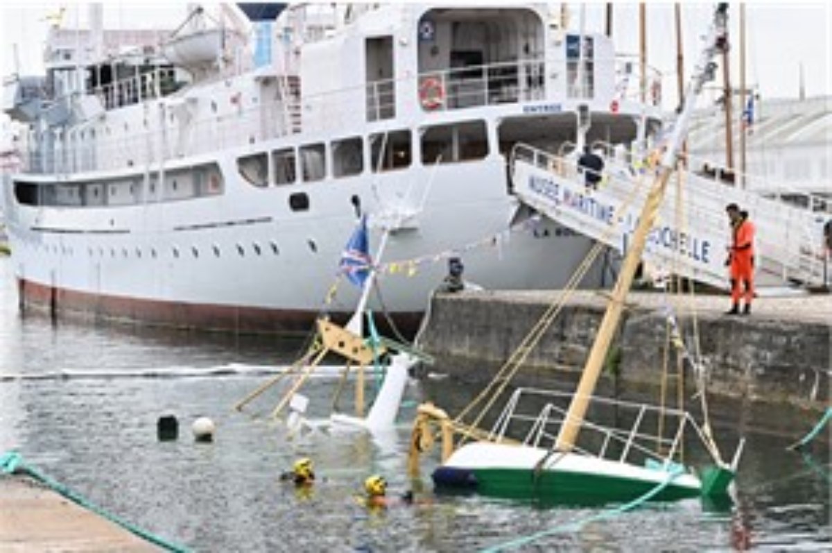 Selon un communiqué, « il s’agit du chalutier classique Manuel Joël du Musée maritime de La Rochelle. Il Il a coulé à 16 heures dans le bassin des chalutiers où il était amarré dans la darse du slipway. La cause de l’accident est liée à l’explosion d’une roue de travel lift, sur le quai rue Sénac de Mailhan au plateau nautique. »