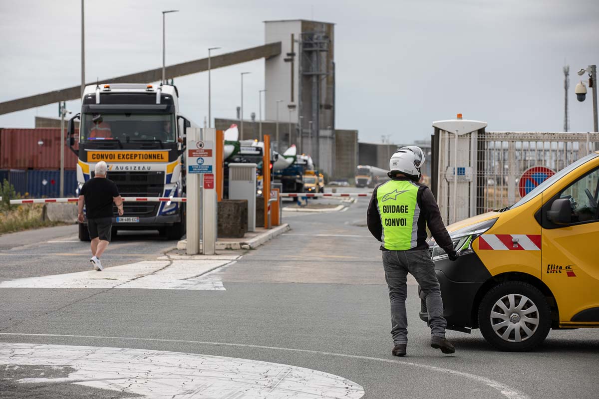 Le lundi 24 juillet en début d’après-midi, un convoi exceptionnel de pales d’éoliennes a quitté le port de La Rochelle.