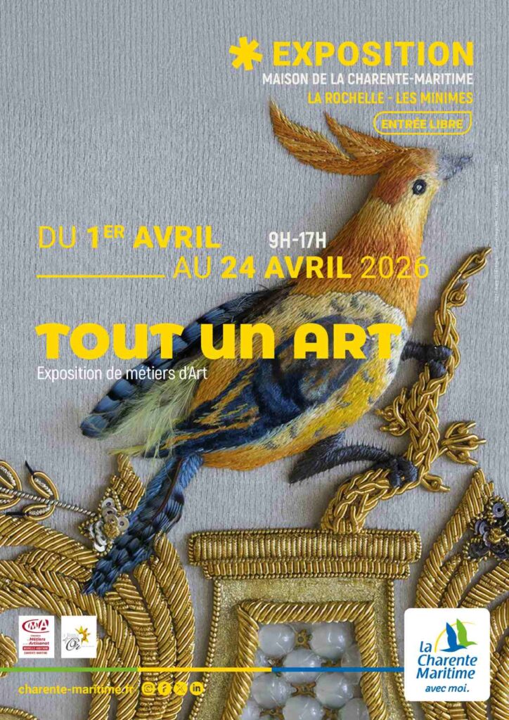« Tout un art », exposition des métiers d’art, est proposée du 1er au 24 avril au sein de l’Atrium de la Maison de la Charente-Maritime, du lundi au vendredi de 9h à 17h, en entrée libre.