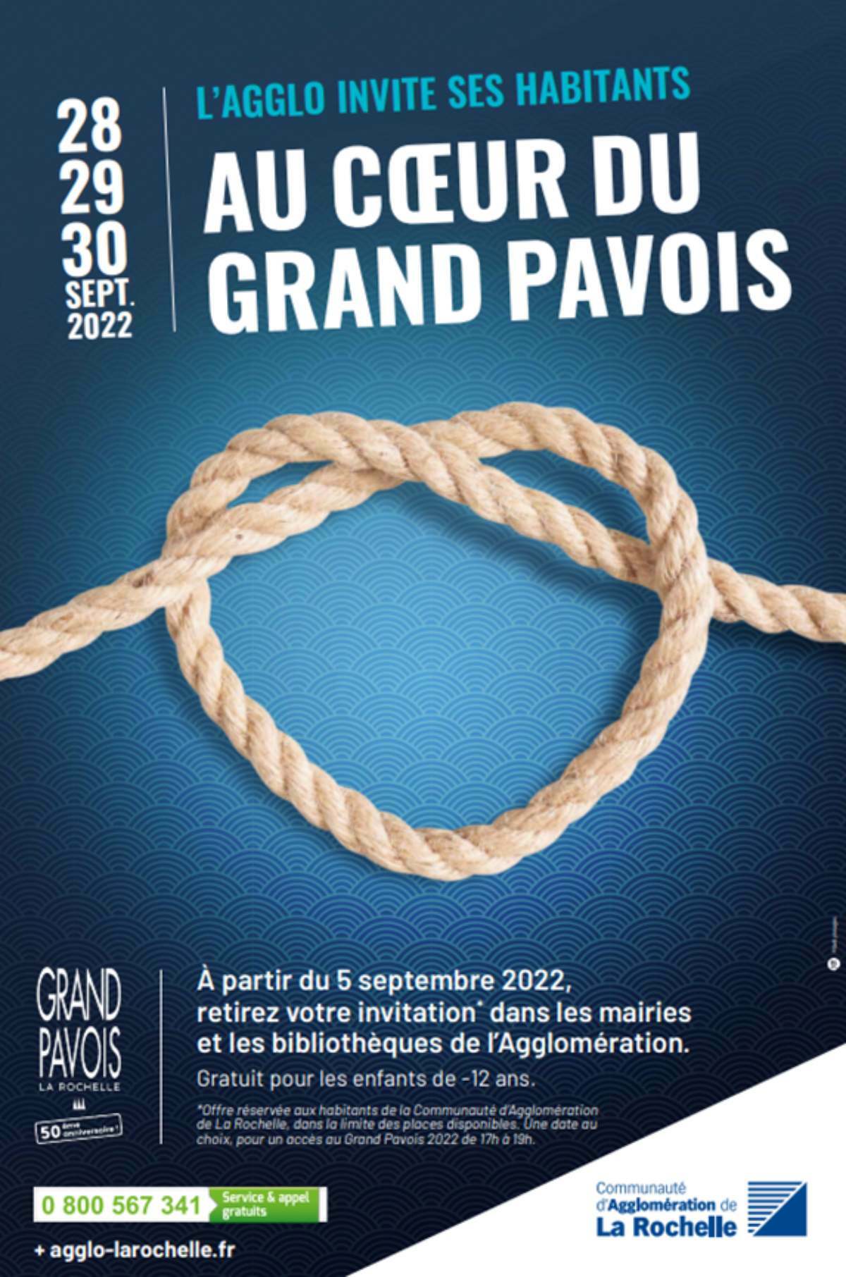 Comme chaque année, la Communauté d’Agglomération s’est associée au Grand Pavois pour ouvrir les portes du salon à ses habitants. Une entrée de 17 heures à 19 heures mercredi 28, jeudi 29 ou vendredi 30 septembre 2022 au choix est offerte sur simple présentation d’un coupon à retirer depuis le 5 septembre dans les mairies, mairies annexes et bibliothèques de l’agglomération.