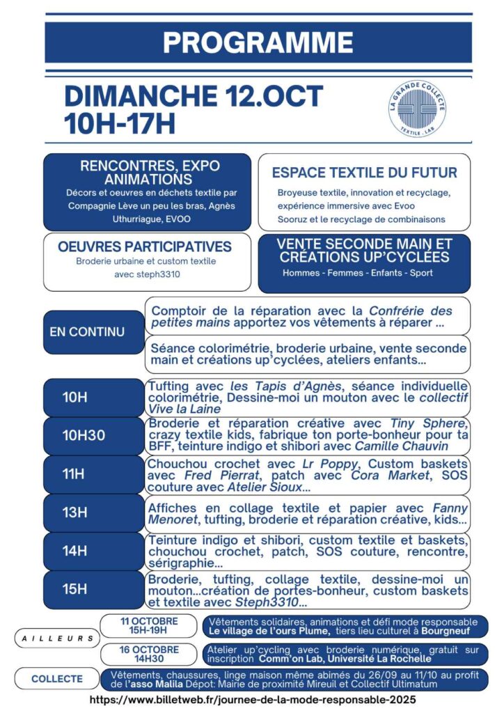 Dimanche 12 octobre 2025, le Musée Maritime de La Rochelle accueille la 2ᵉ édition de la Journée de la Mode Responsable. Organisée par La Grande Collecte, textile Lab et la Communauté d’Agglomération de La Rochelle, cette journée festive propose ateliers, expositions et rencontres pour découvrir une mode plus durable et respectueuse des océans.
