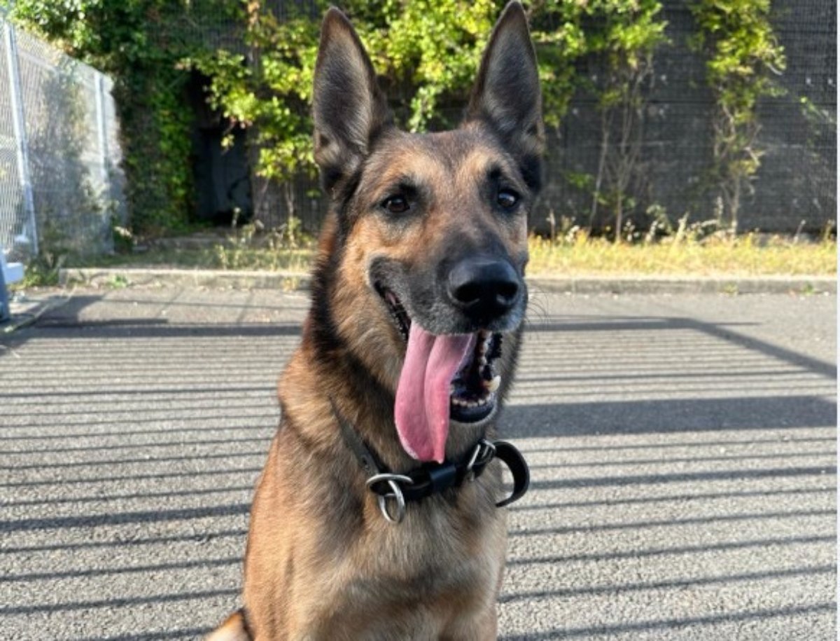 Formé à la recherche de produits stupéfiants, ce chien de police recherche un nouveau maitre. « Il a besoin d’espace et d’autorité en raison de son fort caractère », explique la police.