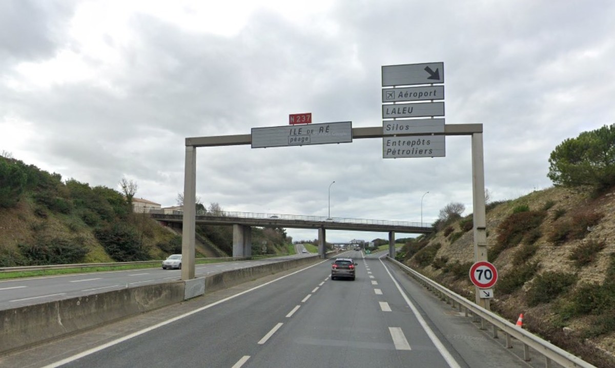 Les automobilistes devront suivre la direction de l’Ile de Ré, faire demi-tour au giratoire de la Repentie et emprunter à nouveau la RN237 en direction de Rochefort, pour se diriger vers la première sortie de Laleu.