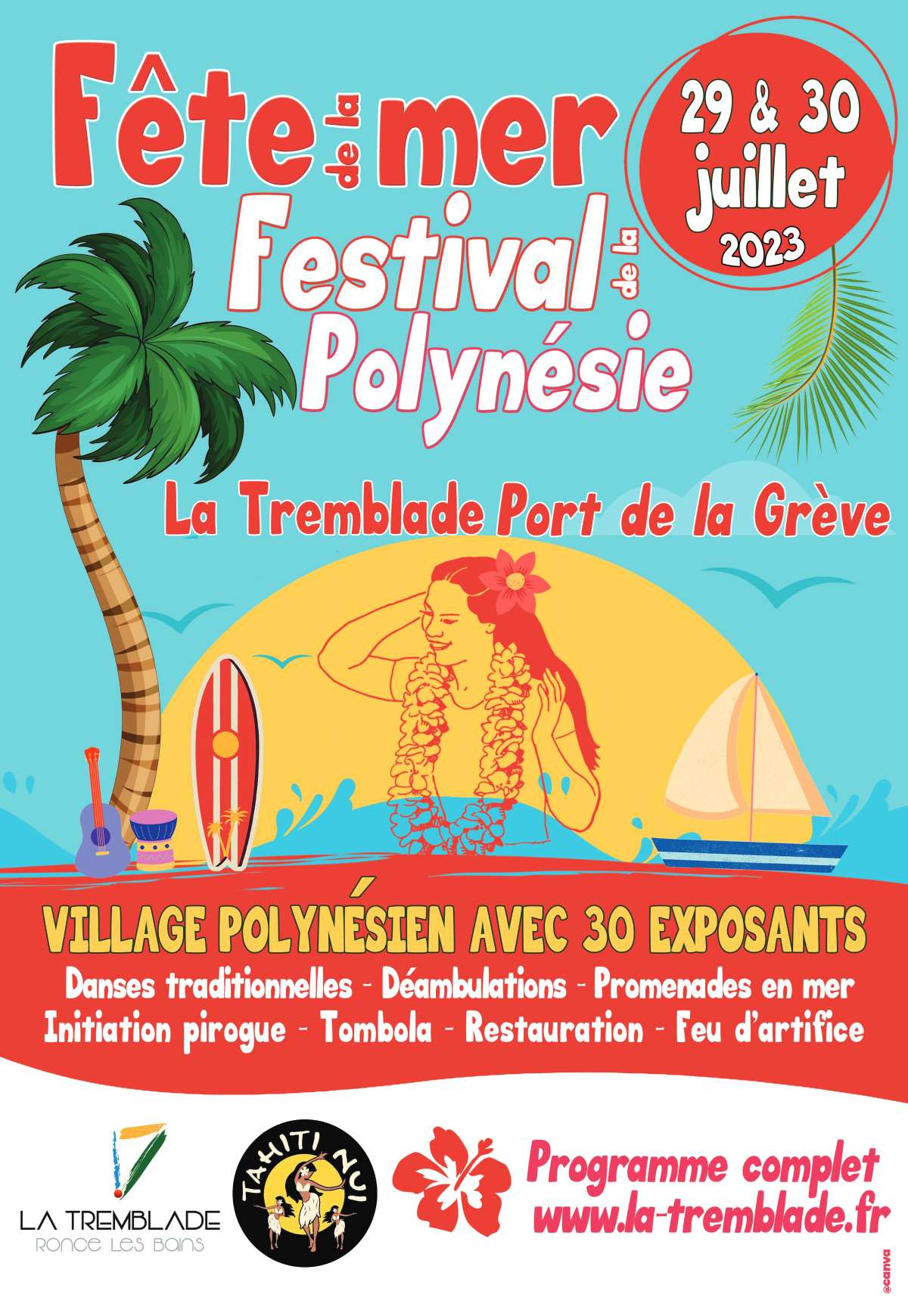 Tahiti Nui La Rochelle en partenariat avec la mairie de la Tremblade fusionne deux évènements en un : la fête de la Mer et le festival de la Polynésie. Cet événement se déroulera les 29 et 30 juillet 2023 sur le port de la grève.