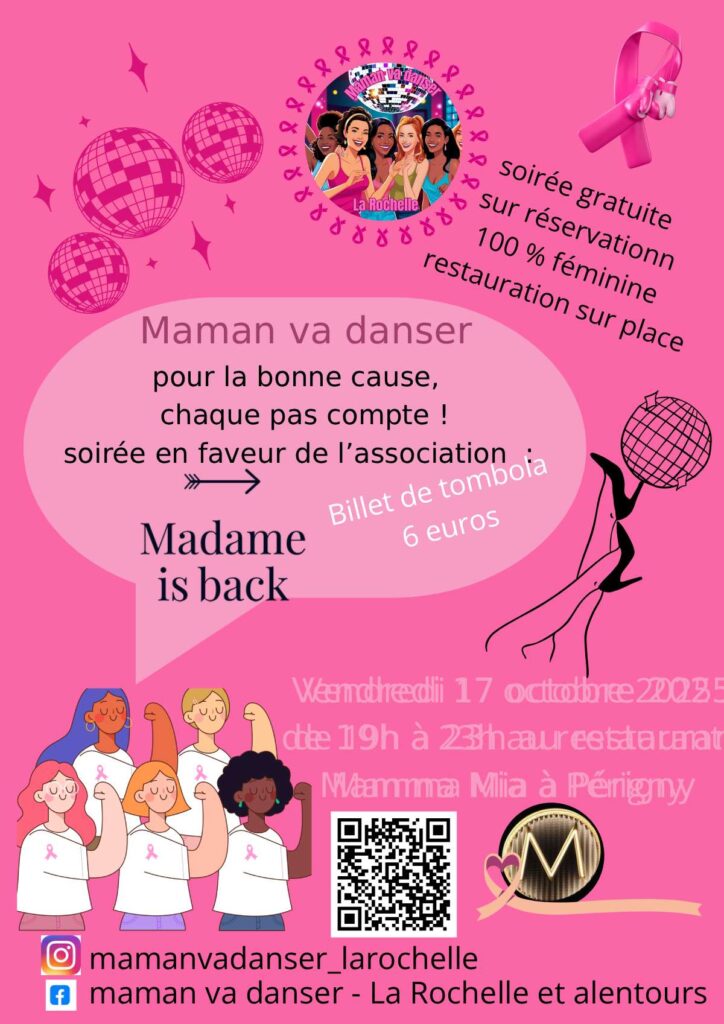 Pour cette occasion, « Maman va danser La Rochelle » soutient l’association locale « Madame is Back« , qui accompagne les femmes atteinte du cancer.