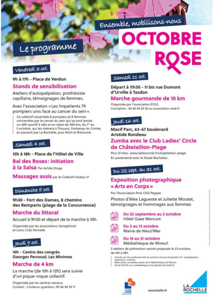 Tout au long du mois d’octobre, les Tours du Vieux Port, la façade de l’Hôtel de Ville, ainsi que les douves entre la tour de la Lanterne et la tour de la Chaîne, et la Grande Roue, seront éclairées en rose.
