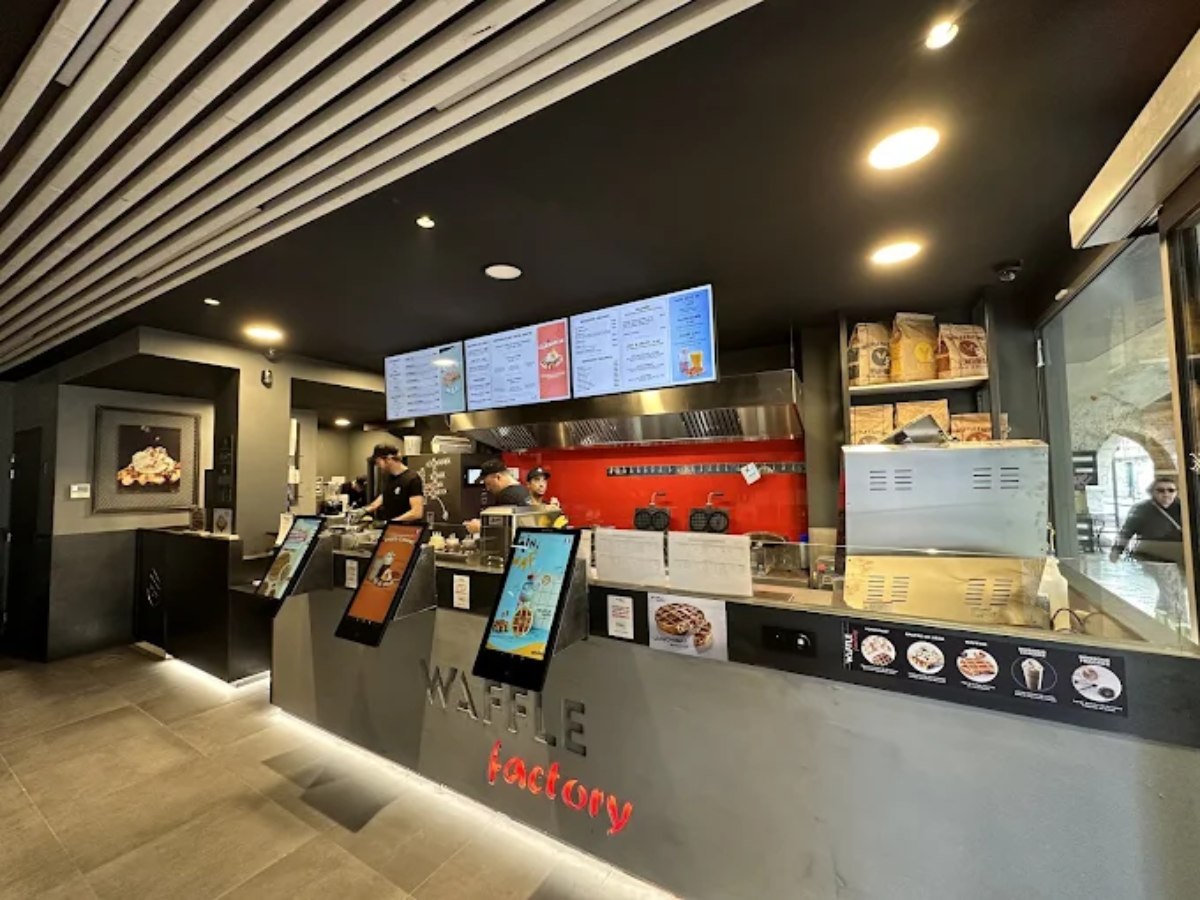 Ce Waffle Factory dispose d’une surface de 53,8 m2 avec 23 places assises à l’intérieur.