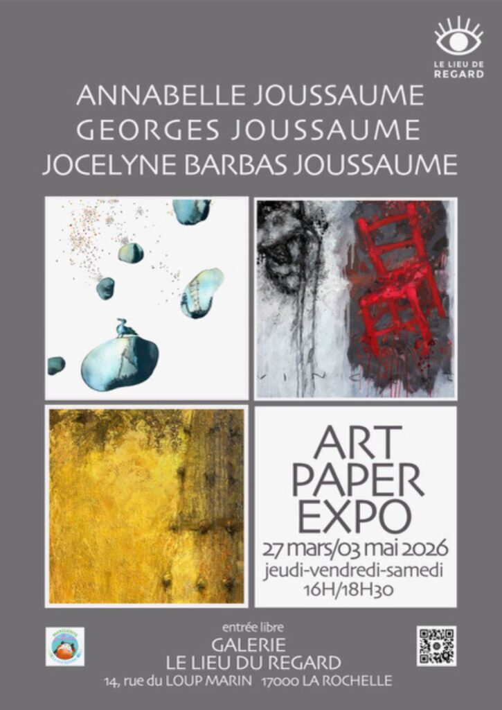 Le vernissage de l’exposition « Art Paper » a lieu vendredi 27 mars à 18h30 à la Galerie Le Lieu de Regard, 14 rue du loup marin -La ville en bois à La Rochelle